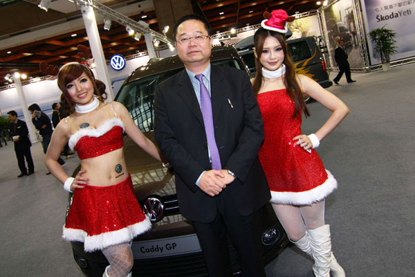 總代理太古標鎰汽車總經理蔡泗銘與兩位車模一同揭幕Caddy GP!