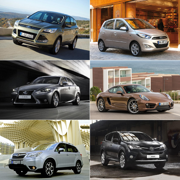 ECOTY 2014入圍名單中,目前僅有Ford Kuga、Hyundai i10、Lexus IS、Porsche Cayman、Subaru Forester、以及Toyota RAV4等六款新車在台灣市場銷售。