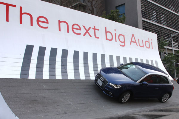 透過行進後停在傾斜坡道上的A1,民眾可體驗A1平穩完美的懸吊及底盤剛性。