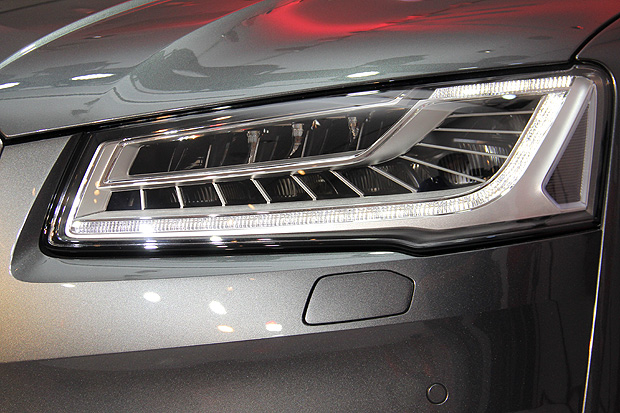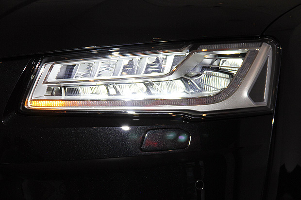 S8車系小改款的重點,與A8/A8 L相同,主要著重在外觀細節的修飾,最大的焦點,在於車頭正面整合動態是方向燈的Martix矩陣是全LED頭燈。這由25顆LED發光單體所組成的全LED頭燈,內建的控制單元可以依照感應器所偵測的周遭環境與當下行車狀況,控制個別LED單體的反光鏡角度,並決定是否需要點亮各LED單體,不僅能夠降低對於來車或是前車的干擾,也能為自身提供最佳的照明效果。