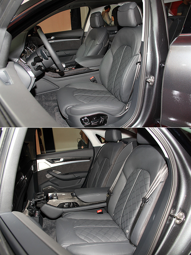 內裝部分,臺灣市場的A8 L W12並未選用四獨立座椅的配至,儘管如此,仍然配置有前22向、後12向電動調整座椅,並且整合通風、加熱與按摩功能,同時,右後座還可直接控制附駕駛座椅背角度,以迎合後座買家的舒適需求。身為Audi家族的頂級旗艦,A8 L W12的安全配備不僅與S8同級,還另外搭配360度環景顯影系統、擬真停車輔助圖示,以及整合行人與大型物體標示功能的夜視行車輔助系統,已建構完善的安全保壘。