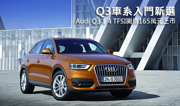 2012年中於臺灣市場發表的Q3車系,以都會輕休旅的姿態,成為Audi家族SUV產品的入門成員,以2.0 TFSI與2.0 TDI兩款汽、柴油引擎,搭配quattro四輪驅動系統與間容都會與休閒的設計,為Audi打入臺灣的豪華小型SUV市場。而為了持續拓展Q3車系的戰力,Audi Taiwan決定為臺灣市場導入Q3 1.4 TFSI,透過更入門的車型,充實Q3車系的產品編成。
