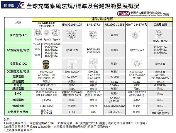 此座台灣第一的電動車充電站已於七月上旬動土,不僅是台灣電動車發展的重要里程碑,更具有全球創新性的意義,因為現今國外充電站之建置,多依各自地區標準僅提供單一充電介面規格;基於國內產業之主力市場以全球外銷導向,為充分提供國內業者完整的產品驗證環境,所以廣納國際各式快、慢速充電規格等一應俱全,不管是台灣工業局先導運行規範、日本CHADEMO、大陸GB、美國SAE、歐規IEC TYPE I等都可來電;隨著美國、歐洲充電標準之持續發展,未來也會於此充電站示範平台陸續規劃、建置。