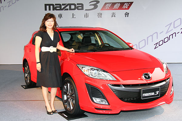 Mazda Taiwan執行長朱梅君,與Mazda3「型動版」合影。