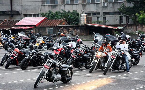 淡水漁人碼頭在一日內湧進了多輛個性化的哈雷車款。