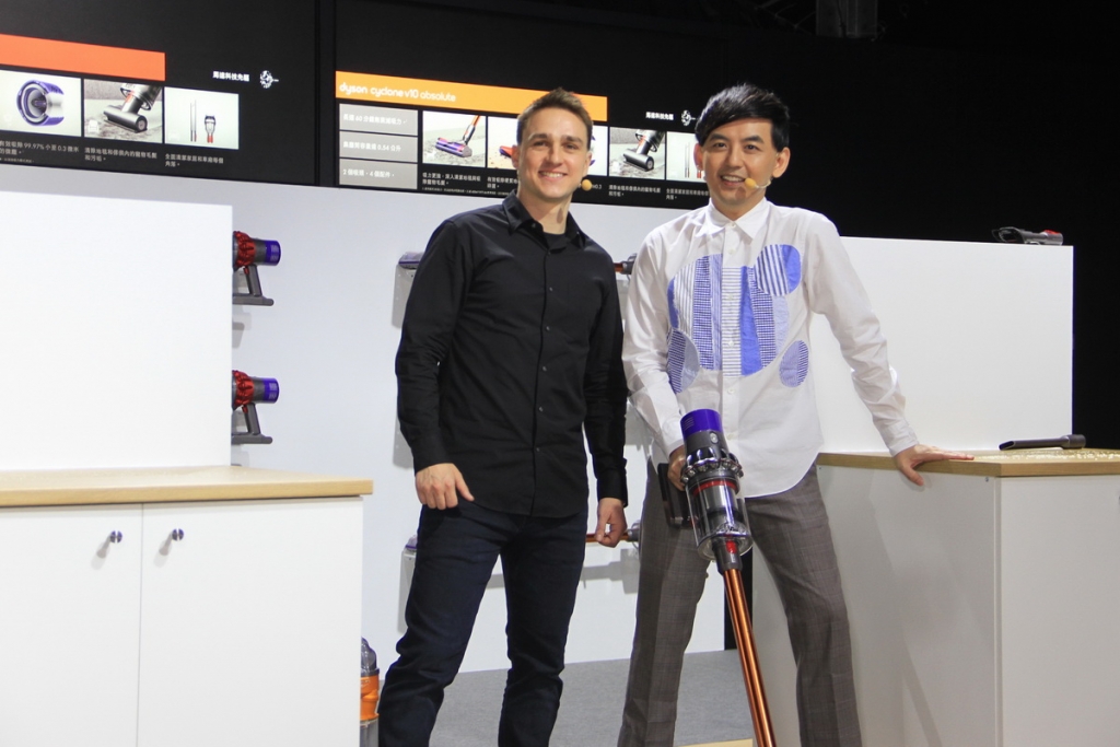 以一句「吸力永不衰退」成功打入婆媽以及貴婦的英國時尚科技精品Dyson,今日假台北101水舞廣場發表最新的Cyclone V10無線吸塵器,還找來該品牌頭號粉絲、號稱「演藝圈最會做家事的藝人」黃子佼現身站台,不僅搶著試用,還上演與英國工程師用新舊款吸塵器PK打掃的戲碼,可以說是相當熱鬧!