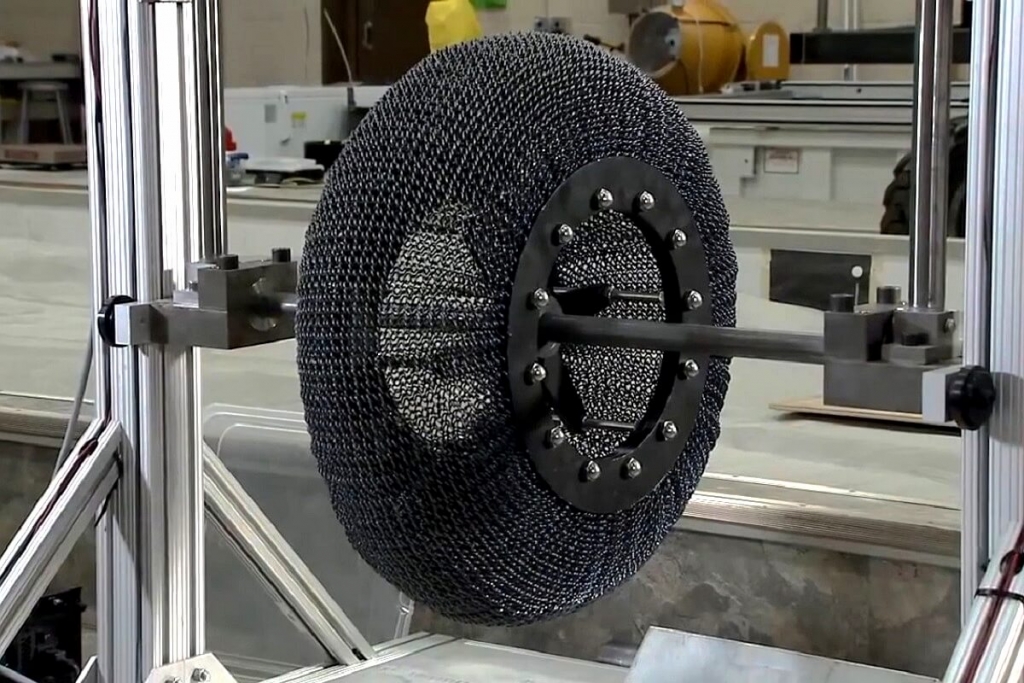 這款超彈性輪胎受到當年阿波羅登月車的啟發,與傳統以橡膠製作的方式不同,使用的是鎳鈦記憶合金(Nickel-titanium alloy)串鍊而成,所以完全不需要充氣,沒有爆胎的後顧之憂,更沒有橡膠輪胎的磨耗問題。