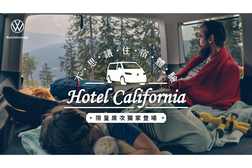 近年受疫情影響國旅市場大爆發,當中又以「露營」為最熱門討論話題。“Hotel California”不思議住宿,就取福斯商旅熱銷露營車「California」之名,以「VanLife」為出發點,提供消費者一趟難忘的車宿體驗。這次活動與知名深度旅遊體驗電商平台KKday合作,共同招募熱血的你入住”Hotel California”,以福斯商旅旗下熱門車款,包括甫於上個月搶先曝光的「Caddy California」原廠露營車及「Caravelle + VanLife Box好野露營組」兩款露營車款。只要NT$1元就有機會參與此次活動,並入住”Hotel California”限量席次,車宿地點包括六福村非洲部落動物園區及天母棒球場,兩種不同的夢幻場地,邀想成為”VanLifer”的你體驗一生難忘的不思議住宿。