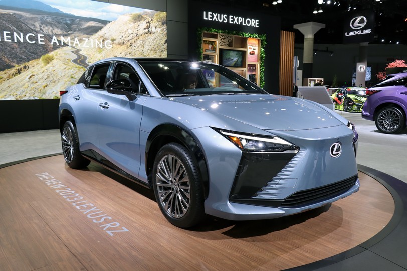 不得不說,由於純電車款在設計上所受到的限制較少,因此 RZ 幾乎是以 LF-Z Electrified 概念車的形式量產,同時也無需考慮引擎的冷卻和排氣需求,得以更為聚焦空氣力學性能。Lexus 標誌性的迴旋鏢大燈在 RZ 中沒有那麼銳利,原先的「紡錘形水箱罩」變成了輪廓也;車身線條大量沿用了 LF-Z Electrified 的銳利跑車化設計,這個「紡錘形」車身雖然已經在 NX、RX 上面看到,但放在純電系列中比例更為和諧;車尾採用一體式 LED 設計,連概念車上特殊的尾翼也保留下來。