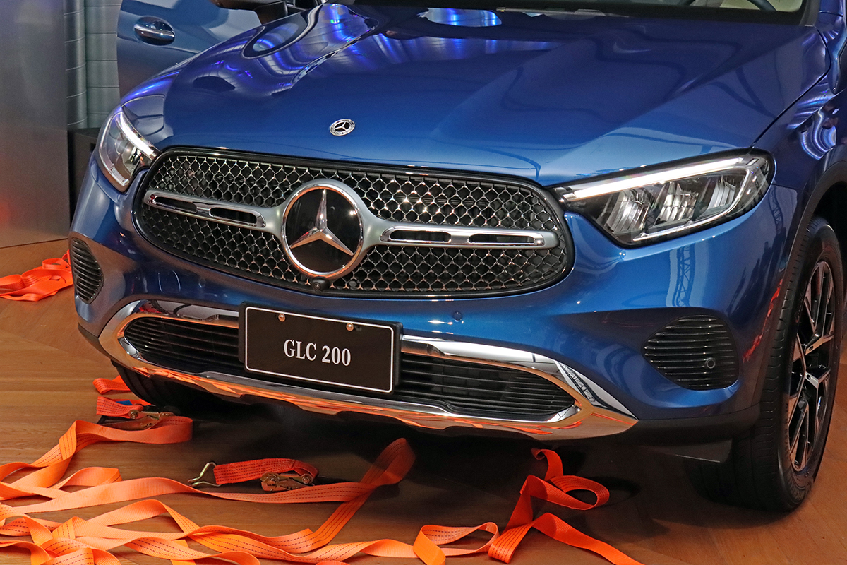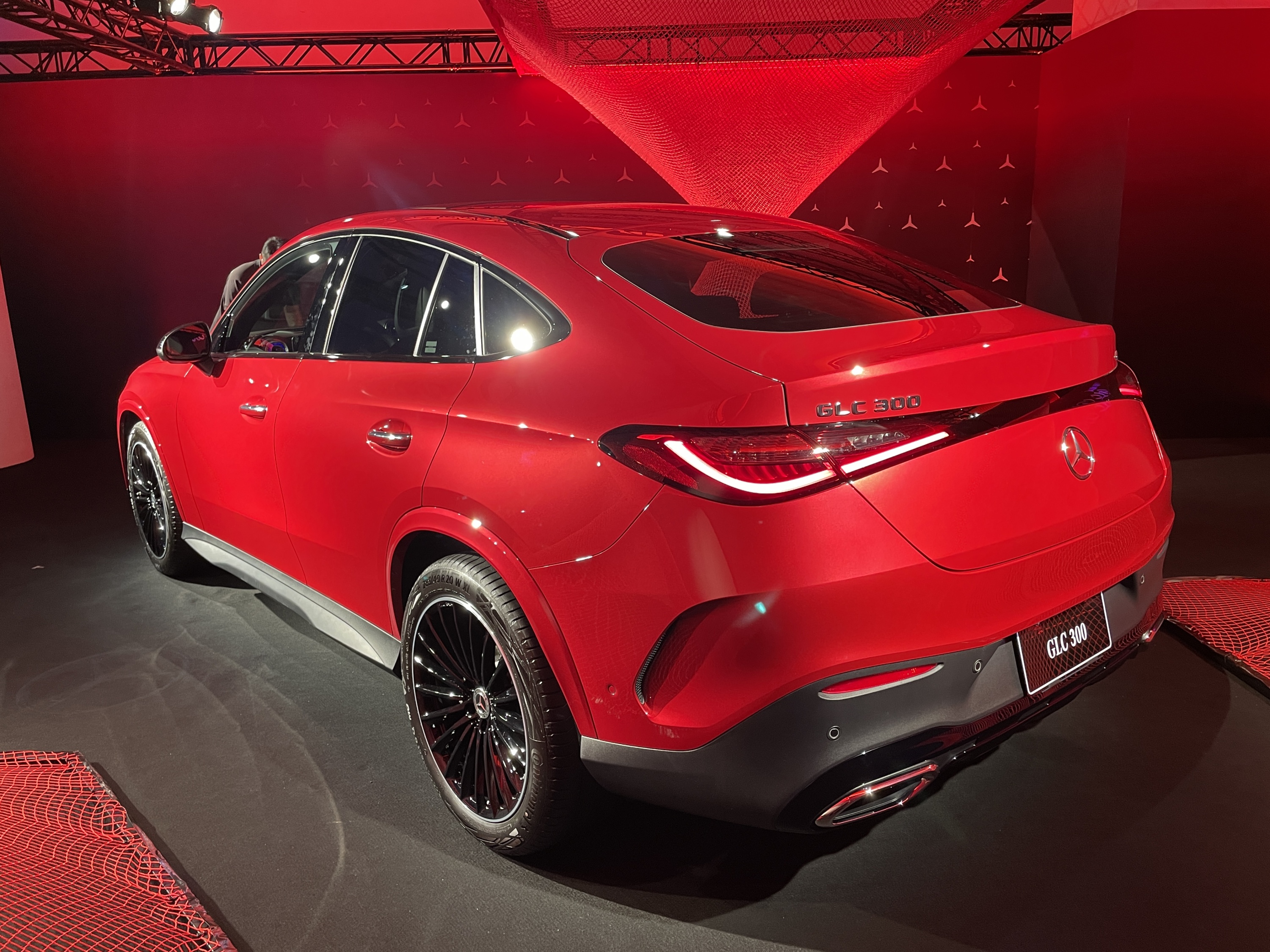 GLC Coupé 外型延續了新世代 C-Class 的「鯊魚頭」造型,銳利且帶有倒鉤日行燈設計的 LED 頭燈組(Matrix 多光束大燈標配、頂級可選 Digital Light)儼然成為視覺焦點,但 GLC-Class 刻意在上緣與水箱罩連接,外觀也導入三種風格(Avantgarde、AMG Line、夜色套件),而 AMG Line 版本針對保險桿細節處理將進氣口加大,同時倒梯形水箱罩內採用了「三芒星」的飾版,在霸氣與精緻感上都獲得提升。