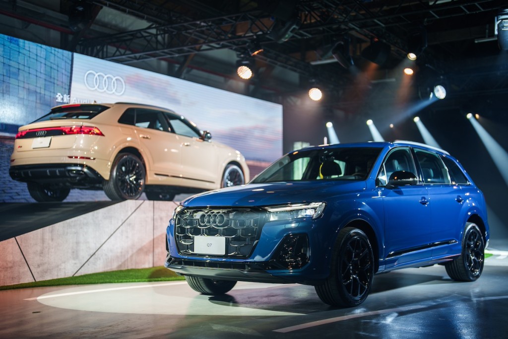 在外觀部分,二度改款 Q7 變化最大的就是車頭造型,採用八邊稜角水箱護罩搭配L型飾條與進氣口造型,結合銳利Matrix矩陣式LED頭燈設計,視覺更增添現代化及動感氣勢。另新增Chili Red火耀紅、Sakhir Gold薄霧金與Ascari Blue 星夜藍三款新車色,數位 OLED 尾燈則是列為選配,提供4種不同光形依個人風格自由搭配。