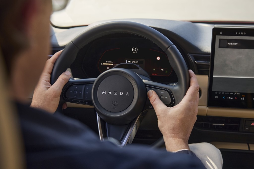 全新的HMI體驗旨在讓駕駛者完全掌控局面,同時減少視覺、手動及認知干擾。它繼承了Mazda的安全理念,追求每一次互動的簡潔與易用性。在強烈的橫向佈局中央,搭載全新整合式觸控螢幕,提供了12.9吋與15.6吋尺寸,並具備可自訂的智慧型手機式互動功能。核心控制遵循安全優先的邏輯:基本功能仍保留實體按鈕,常用功能則置於較高且永久可見的位置,減少眼球運動。所有車型皆配備10.25吋數位駕駛儀錶板,以及及比以往更大的抬頭顯示器。