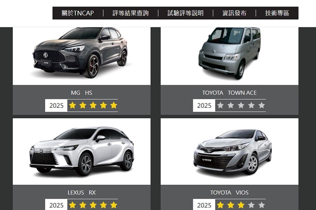 為提供消費者新車安全資訊,促使車輛產業升級,提升國內車輛安全性,國內推動臺灣新車安全評等計畫(TNCAP),在完成 114 年第四季四車型挑選、購置、試驗及評等相關作業後,今(29)日正式公布TNCAP第七、第八順位受評車型的評等結果,HYUNDAI CUSTIN 獲得四顆星,HYUNDAI TUCSON L 獲得三顆星,以及車輛業者自費申請評等二車型的評等結果,TOYOTA YARIS CROSS 獲得四顆星,LUXGEN n7 獲得五顆星。
