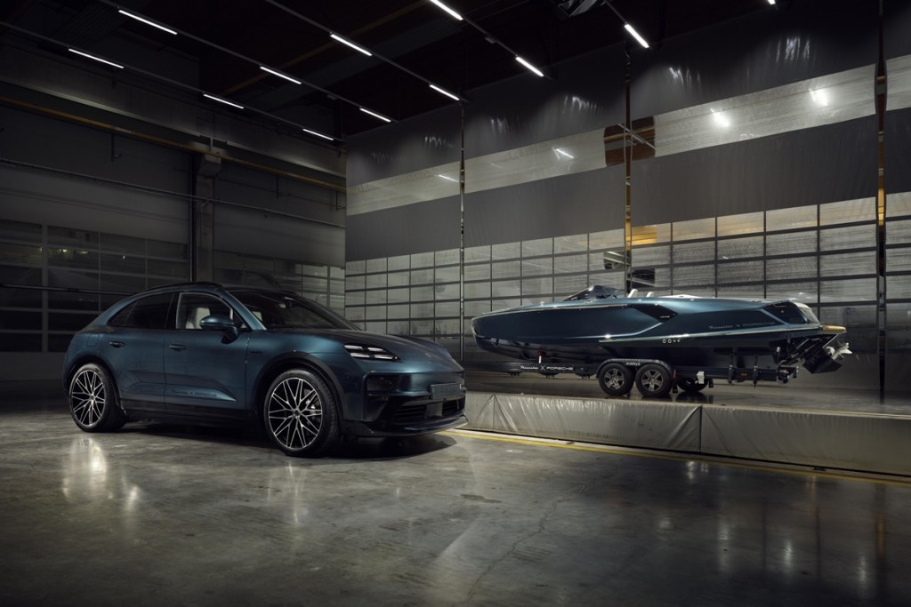 這款長7.97公尺的新船不僅搭載Porsche動力,且在許多細節上延續了這款跑車品牌相同的設計DNA。在杜塞道夫車庫全球首發時,Porsche以Macan Turbo為基礎、並由Porsche Exclusive Manufaktur廣泛客製化這輛專屬概念車,突顯汽車與船隻之間的緊密連結。透過眾多外觀與內裝配置,這艘船與SUV共享統一的設計風格,融合了公路與水域的元素。