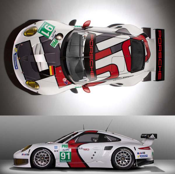 全新 911 RSR 擁有輕量化與先進的空氣力學設計,優異的車輛造型是為了呼應特別的 911 周年慶:在俯看時能夠清晰看見 50 與 911 的字樣。Porsche原廠的 Manthey 車隊獨家以Porsche 911 RSR 參加 2013 年賽季。