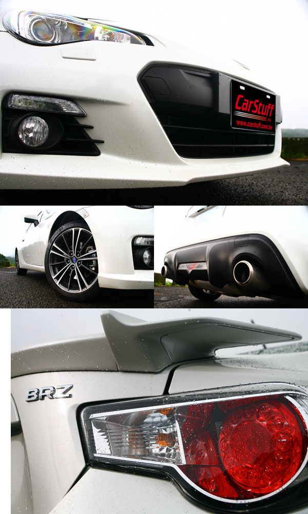 外型上,BRZ與我們先前所試駕過的Toyota 86與Scion FR-S幾乎沒有太大不同,在精巧的身形下,雕塑出日系跑車所愛用的流線造型,三者之間僅有在廠徽、車頭保桿、氣壩與霧燈配置有所不同,乍看之下並不容易分辨。進入座艙,基本陳設完全相同,最大的差異在於BRZ採銀色亮面飾板,86與FR-S則為啞黑色格紋樣式,另外各自所搭配的音響系統也略為不同。