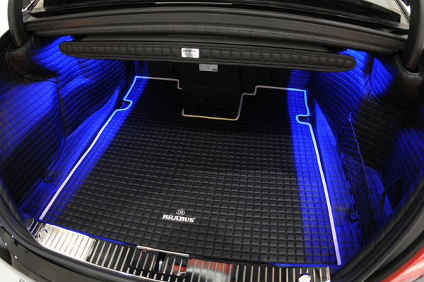 除了科技化「iBusiness 2.0」套件,BRABUS同時也利用藍色LED燈具於車內與行李廂中營造科技氛圍。座艙中也全面換裝質感更高的皮革包覆,飾板也改為類遊艇之橫條紋樣式,讓豪華感也跟著同步升級。