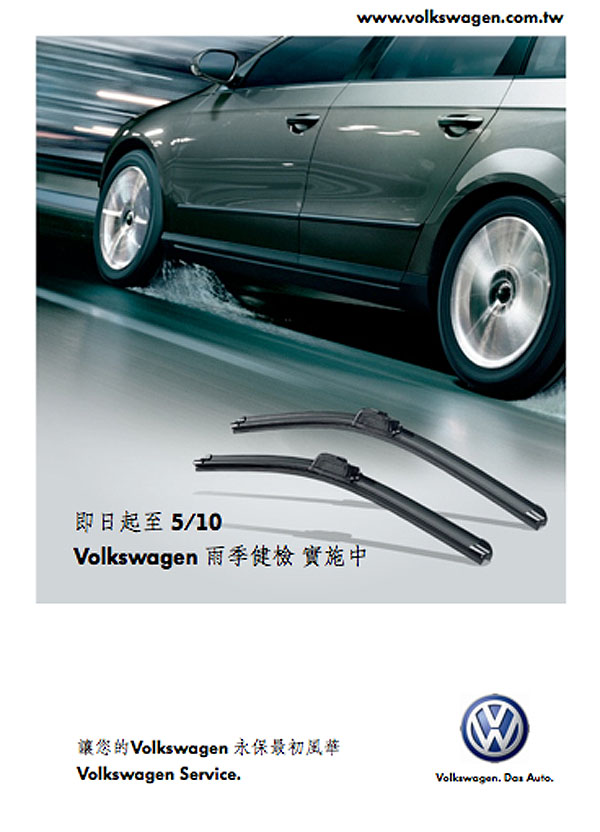 據太古標達汽車表示:位處亞熱帶的台灣即將自五月份開始進入梅雨季節,南北鋒面滯留本地所造成的豪大雨勢將嚴重影響駕駛人的用路安全。因此,自4月11日起至5月10止VW全台授權服務廠將搶先在梅雨報到之前為廣大車主舉辦雨季健檢。活動將免費提供15 項雨季行車安全檢查與玻璃油膜清除服務,以增進車輛在雨中的視野清晰度與行駛安全性;此外,攸關雨季行車安全的消耗性零件如前雨刷片與前煞車來令片等均提供套餐特價。活動期間還有原廠折疊式雨傘加價購、原廠泰迪熊精品限量特賣、以及輪胎全面85折等等的好康優惠。