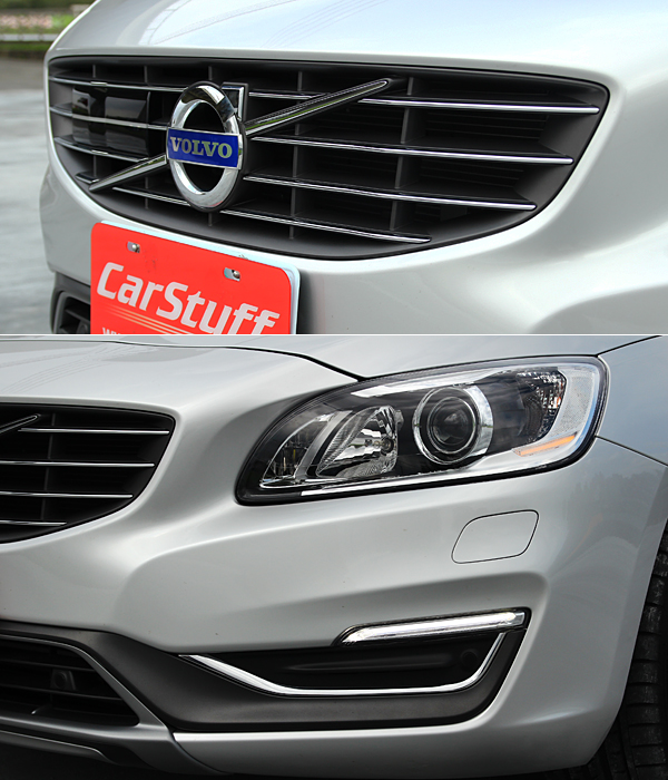 2014年式S60將LED日行燈以橫向設計暗藏在兩側氣壩上緣,加上橫式鍍鉻水箱罩的重點安排,讓車頭的動感氣息向斯文端靠攏。