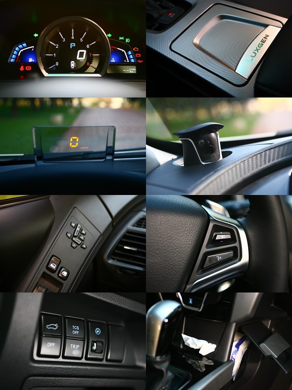 而長長的車身當然也順勢帶來良好的後行李廂空間,除此之外,包括吸頂眼鏡盒、四門置杯架、駕駛座下雨傘盒、副駕駛座下抽屜、前座兩側置物盒、前後座置杯架與獨一無二整合進排檔座前的面紙盒,處處皆可見Luxgen巧思。除此之外,Luxgen向來受到好評的科技化配備以及安全配備在這輛車上也未曾缺席,像是全車六氣囊、ESC動態車輛穩定系統、TCS循跡防滑系統、BOS+煞車優先、ABS、EBD、BAS以及DAS+駕駛警示系統、LDWS+車道偏移警示系統、PDS+行人警示系統、FCW+前車防撞警示系統、AEV+ 360度環景影像系統與HUD抬頭顯示器,都完整建構出Luxgen U6 Turbo值得信賴的行動堡壘形象(依等級而內容所不同,詳情請見下方簡表),至於享樂部分包括Luxgen Think+ Touch、HTC智慧手機連結、iKey+、定速巡航與升降式高音喇叭,則提供行車時或便利或享受的愉悅氛圍。