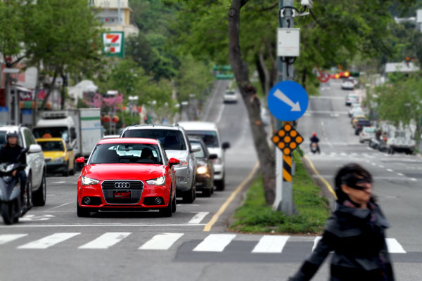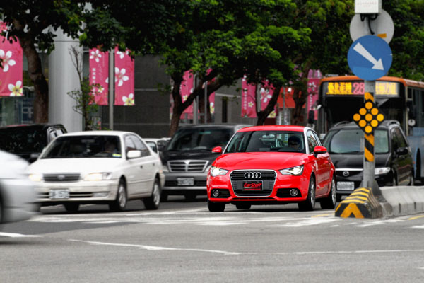 在車陣中鮮紅色的A1 1.4 TFSI顯得格外亮眼。