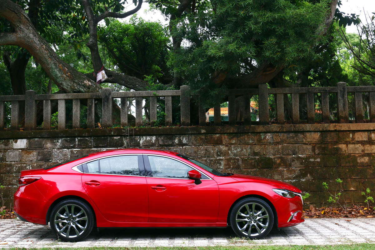 而現行世代Mazda6在2012年亮相,2013年於全球各市場上市,車格全面放大,肩負起家族旗艦地位,外型延續Mazda家族特徵,顯得流線且修長,近期Mazda6進行小改款,再度延伸「魂動KODO Design」設計理念,換上了新造型的橫格柵式水箱護罩,保桿部分也經重新修飾,兩側加入展翼狀闡述「魂動之翼」之鍍鉻霧燈框,車尾部分則是更改了尾燈排列方式,同時在本次試駕的Mazda6 SKY-D 頂級型上,還全面導入LED科技,配有ALH智慧型LED頭燈、LED日行燈、LED霧燈與LED尾燈組,迎合了當前流行趨勢。