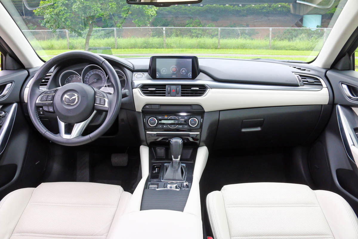 進入座艙,新世代的Mazda車款皆大幅減少了控台按鈕數,簡化操作的複雜度,而全新Mazda6也導入了Mazda開發的MZD Connect人機智慧資訊整合系統,可透過七吋中央資訊顯示幕提供音響、通訊、GPS地圖、車輛設定、油耗等等各項資訊,並且利用設置於排檔座後方的整合式旋鈕操作,使用邏輯簡單易判,不需要花太多時間即可上手,是目前眾多類似系統中,比較好用的一套,有效提高駕駛者的操作效率,避免分神操作而影響行車安全,為小改款後Mazda6的新賣點之一。