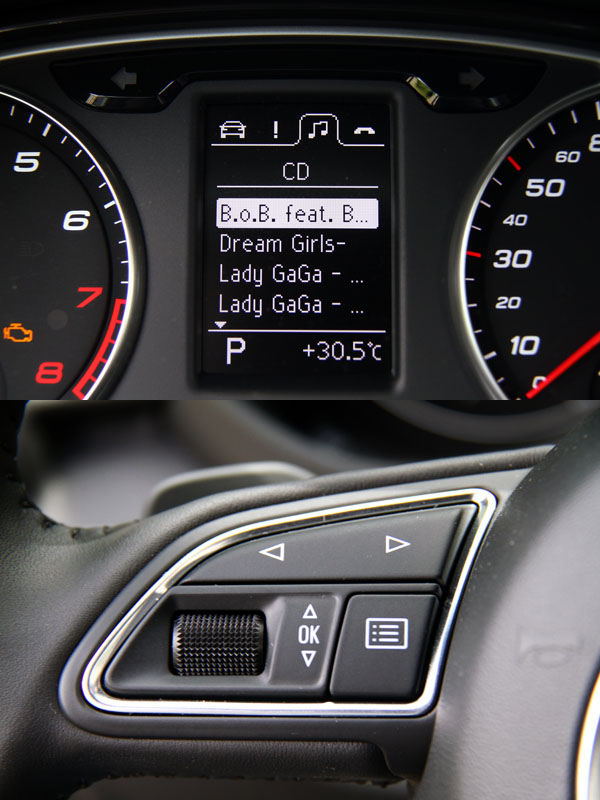 A1 Sport亦標配DIS駕駛資訊顯示系統,可藉由方向盤左側的快捷鍵操作,具有行車、通訊、音響與警示等訊息顯示,並且還具有中文曲目讀取功能。