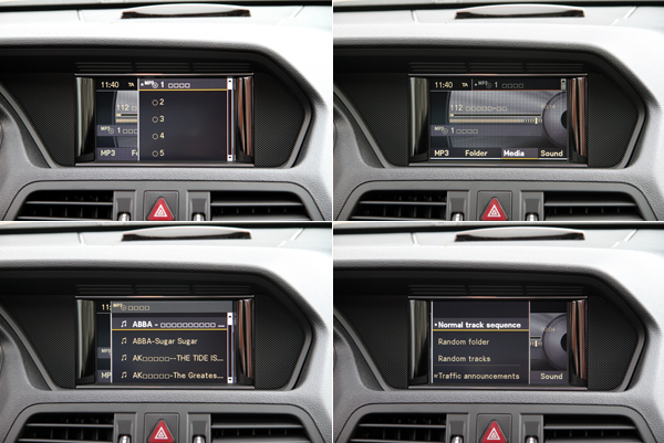 E 250 CGI BlueEFFICIENCY Coupe配置五速電子自動變速箱〈Touch-shift〉,並具有C/S/M三種模式可供選擇;右下圖則為控台上方液晶顯示幕控制介面。