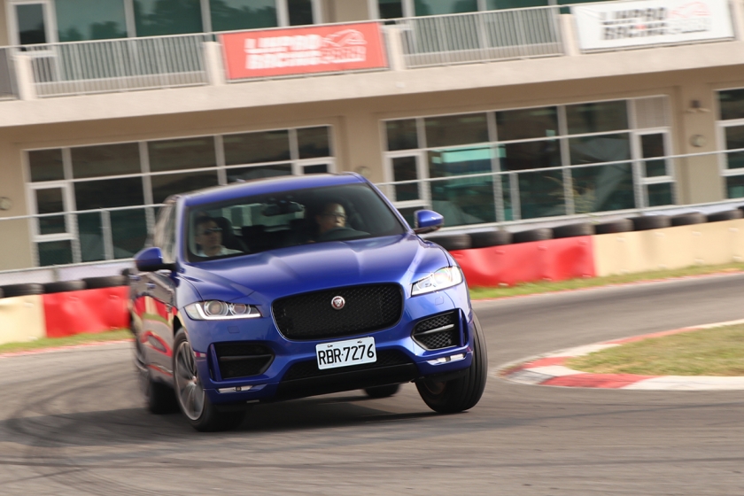 接著將場景移轉到麗寶 Go-Kart 賽車場,雖然這麼大台的 SUV 跑在 Go-Kart 為主的賽道上有點突兀,但後驅設定也讓車輛本身更為靈活,多彎的賽道上你可以藉由控制油門得宜產生的慣性力道,搭配轉向精準的方向盤掌握車身的動態,只不過如果你想要採高速入彎的方式,只要方向盤角度超過極限基本上就是推頭,但駕駛人可以很快修正路線,使得 F-Pace 擁有很沉穩的路感與出彎指向性,對於一台 SUV 來說這是非常難而可貴的。
