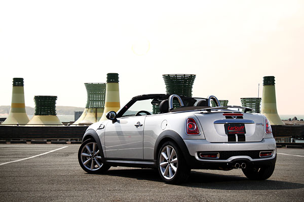 更為下沉的重心,讓人更放心的將Mini Cooper S Roadster丟入彎道,相當精準,更可說稍為神經的轉向手感,容易讓人在一開始多給了點方向盤轉動;而當熟悉後,簡單的轉向,Mini Cooper S Roadster聽話的不得了,開篷時的後軸也十分聽話,你怎麼丟,它怎麼對應,就好像是古時的小媳婦般,逆來順受,偶有的輪胎抗議聲,也像是自怨自艾的抱怨般,不礙事,也不讓人難受。