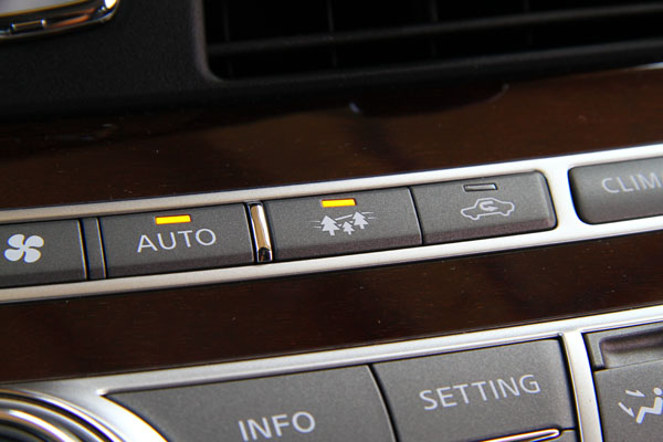 既然身為新世代旗艦車型成員之一,M25 Premium也清楚了解到,只有單一的動力輸出模式,早已難以滿足當前口味日漸挑剔的多金買家,因此特地配置了名為Infiniti Drive多模式行車控制系統,透過位於排檔座後方的旋鈕,提供包含Sport運動、Standard標準、ECO節能、Snow雪地四種行駛模式,藉由調整引擎輸出、變速箱換檔邏輯與VDC介入時機等系統,將引擎的表現作不同需求的表情演出;而上述加速感受乃是建立於Standard標準模式之狀態,而當調整至Sport運動模式後,很明顯的,此引擎反應立顯活潑,透過延後換檔、將引擎轉速維持較高領域的控制,搭配上此具引擎高轉速更顯優異的特性,讓M25 Premium猶如功力放大兩成般的勇猛,無論超車、中高速再加速、或是山道時爬坡需求等,都讓M25 Premium更顯游刃有餘,讓原先平順的動力反應,適度的予以放大,且不會辛辣的難以下嚥,Spoer運動模式,的確是小熱血時的不俗選擇。