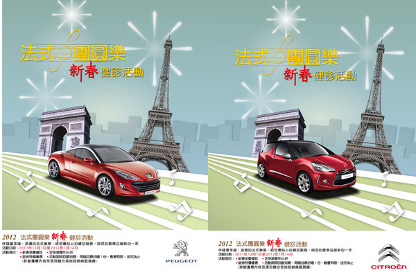 即日起至2013年1月31日止,Peugeot/Citroen服務總代理寶嘉聯合舉辦法式團圓樂新春健診活動,預先為2013年精彩旅程做好準備!