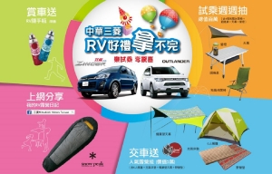 中華三菱十月RV好禮拿不完!即日起至全省經銷試乘OUTLANDER或ZINGER,賞車就送限量RV隨手瓶,試乘再抽露營休閒組(週週抽,共100組),交車再送市價2萬元的露營家庭組,包含6人帳篷、充氣床墊、天幕及野營墊等人氣露營配備,邀您作夥當贏家、盡情樂活遊!