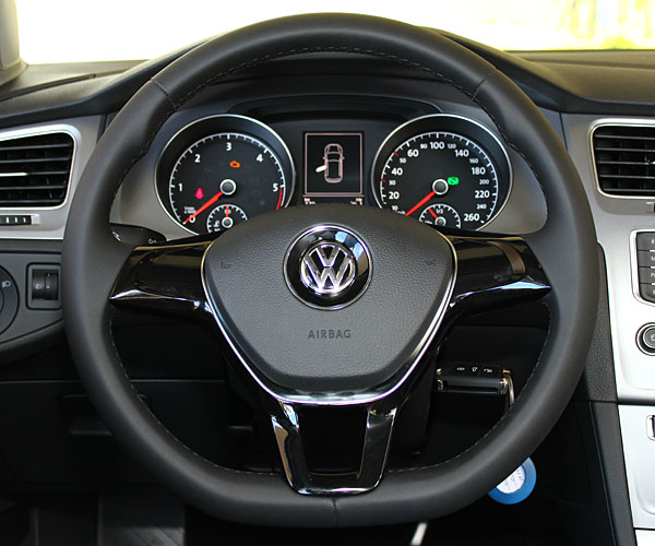 Golf 1.6 TDI BMT使用質感不俗的三輻式方向盤,但因沒有整合功能操作,稍為失色了些。