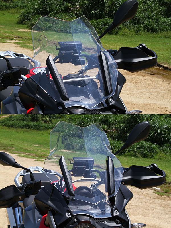為了提升駕馭的品質,BMW R1200 GS有著可調式風鏡,手動設計,則展現其越野粗獷個性。