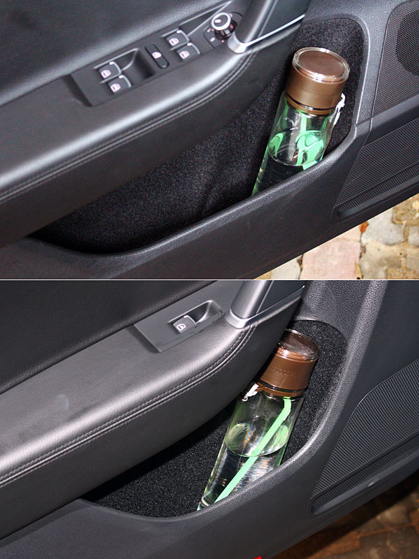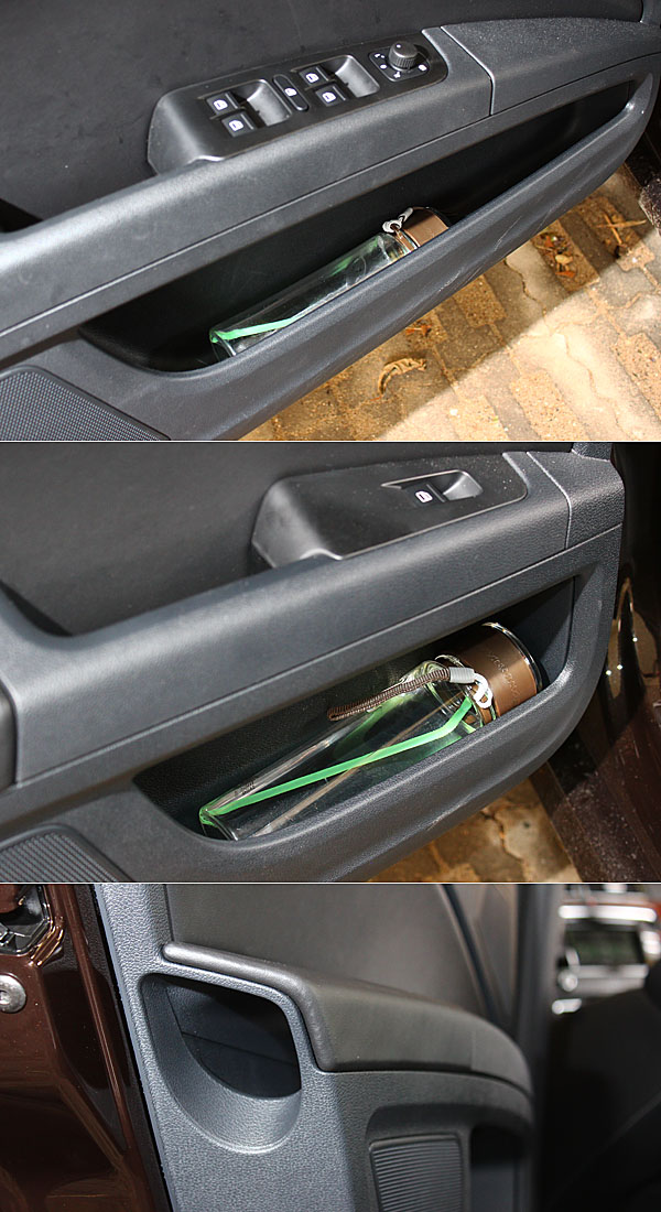 Superb 2.0 TDI前後門板皆沒有特別設計置杯造型,但後門板內有著特別的傘孔設計。