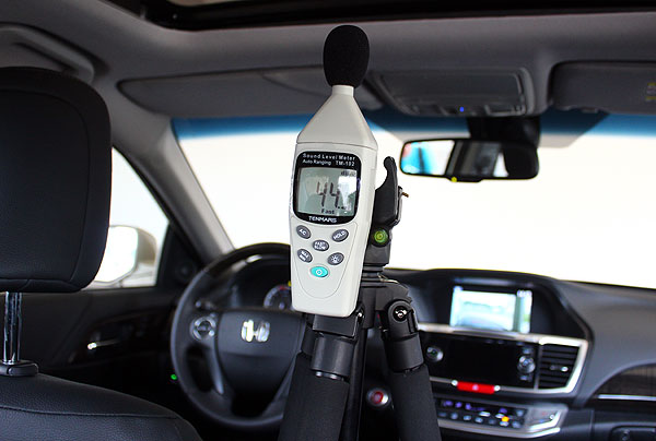 當然,影響舒適度的還有一個,就是行車時車內的靜肅性,我們透過分貝計分別以引擎轉速2000rpm模擬市區行車,運用汽笛聲響測試車輛對於環境噪音的隔音,以及怠速時的車內噪音等,實際測量各款房車的靜肅性。Accord在模擬市區行車的2000rpm轉速時,車內測得49dB的數值,怠速並啟動空調壓縮機時也僅測得49dB,可見車室在隔離引擎室噪音方面下了不少工夫。但,在距車輛1公尺,鳴響汽笛模擬環境噪音靜肅性的測試中,Accord的表現為80dB,實際在道路上駕駛,周遭車輛的聲響也明顯地傳入車內,顯示Accord對於環境噪音的阻絕上,仍有不少的進步空間。