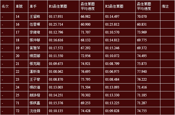 No.71 張棋鑫,當日最快單圈01:13.225。