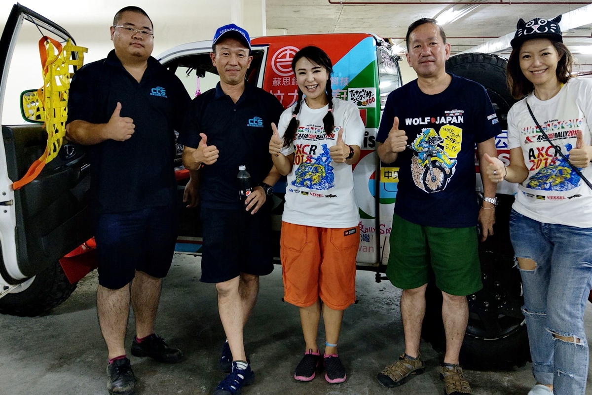 到泰國曼谷牽到比賽車台灣號,第一時間就先尋找汽車維修店家,因為擔心被敲竹槓,於是我就搜尋知名汽車百貨為主,結果讓我找到距離最近的安托華。只是這間分店實在很小間,正愁能不能懂保養維修比賽車時,沒想到總技師(右二)竟然是個熱愛賽車之人,雖然沒有真正的賽車維修經驗,但是安裝安全帶、全車油水檢查等基本處理皆做得非常完善,且全店得知我們兩個女性要單槍匹馬參加長達2,500公里時,不可思議外還給予我們大大的鼓勵。