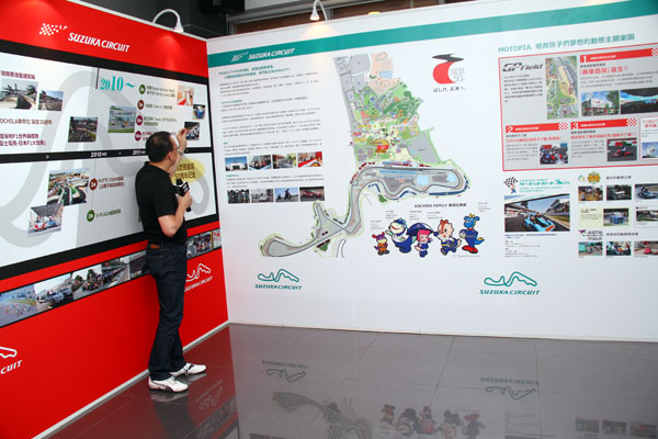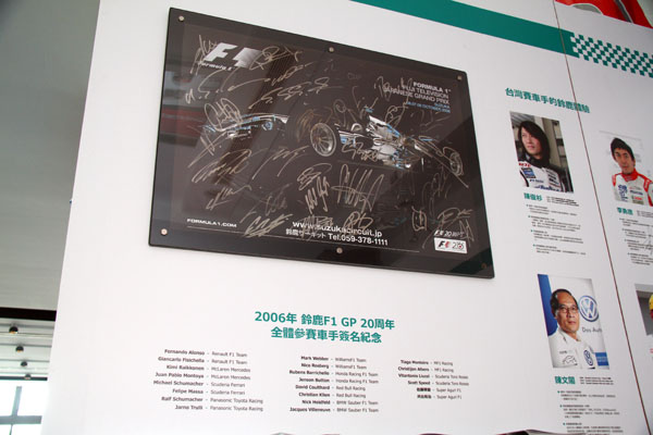 而大魯閣卡丁車場,本次特地與Suzuka鈴鹿賽車場合作,在台灣舉辦外展,藉由完整地圖文、年表等展示,讓台灣車迷可以了解鈴鹿賽車場的發展史與重要地位,而且Suzuka鈴鹿賽車場主管單位還特地出借了2006年紀念Suzuka鈴鹿賽車場舉辦F1賽車20週年、當屆F1車手的簽名板來台展出,別具意義,同時一旁還有台灣六位頂尖車手在親身領略Suzuka鈴鹿賽車場魅力後的心得,分享親身感受。