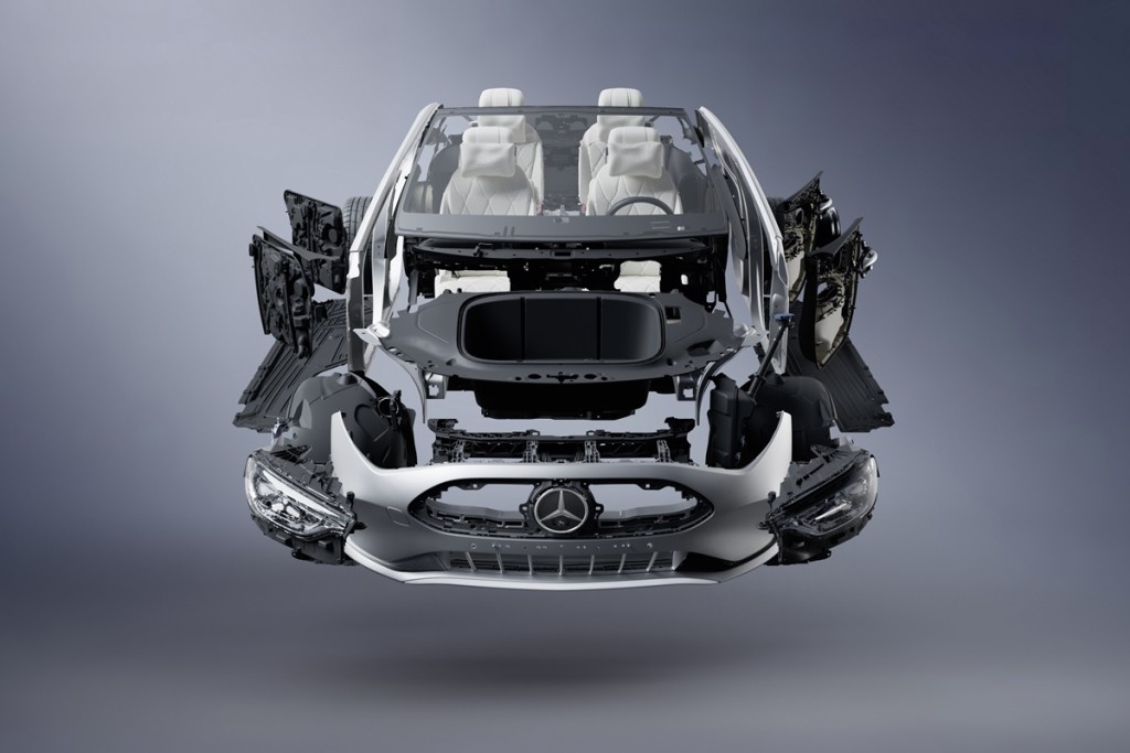 Mercedes-Benz希望提升市面上消費前及後回收物(Pre- and post-consumer recyclates)的使用率。例如:全新CLA的雨刷槽採用100%回收材料,取代初級聚丙烯(Polypropylene)。前後保險桿等零件也約含有高達25%的PCR。
