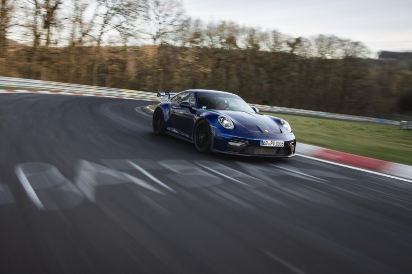 新款Porsche 911 GT3正式成為紐柏林北環賽道上速度最快的純手排量產車。Porsche品牌大使Jörg Bergmeister駕駛該車型打破搭載更大馬力引擎的某競品所創造的原紀錄,成績提高9.5秒以上。由於所有與性能相關的零部件均經過進一步優化,配備魏斯阿赫(Weissach)套件的手排新款911 GT3甚至比搭載Porsche雙離合傳動系統(PDK)的前款車型(992.1)還快了3.678秒。